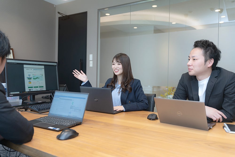 週の報告や担当のお客様の情報共有を行い、部署メンバー全員で施策を検討します。 -